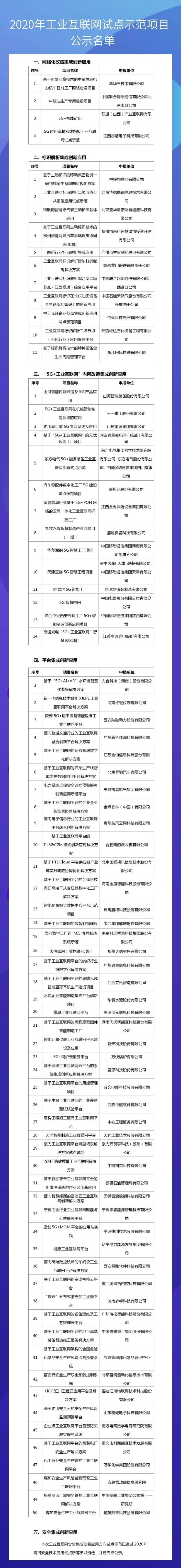 注:《2020年工业互联网试点示范项目名单》附文末。